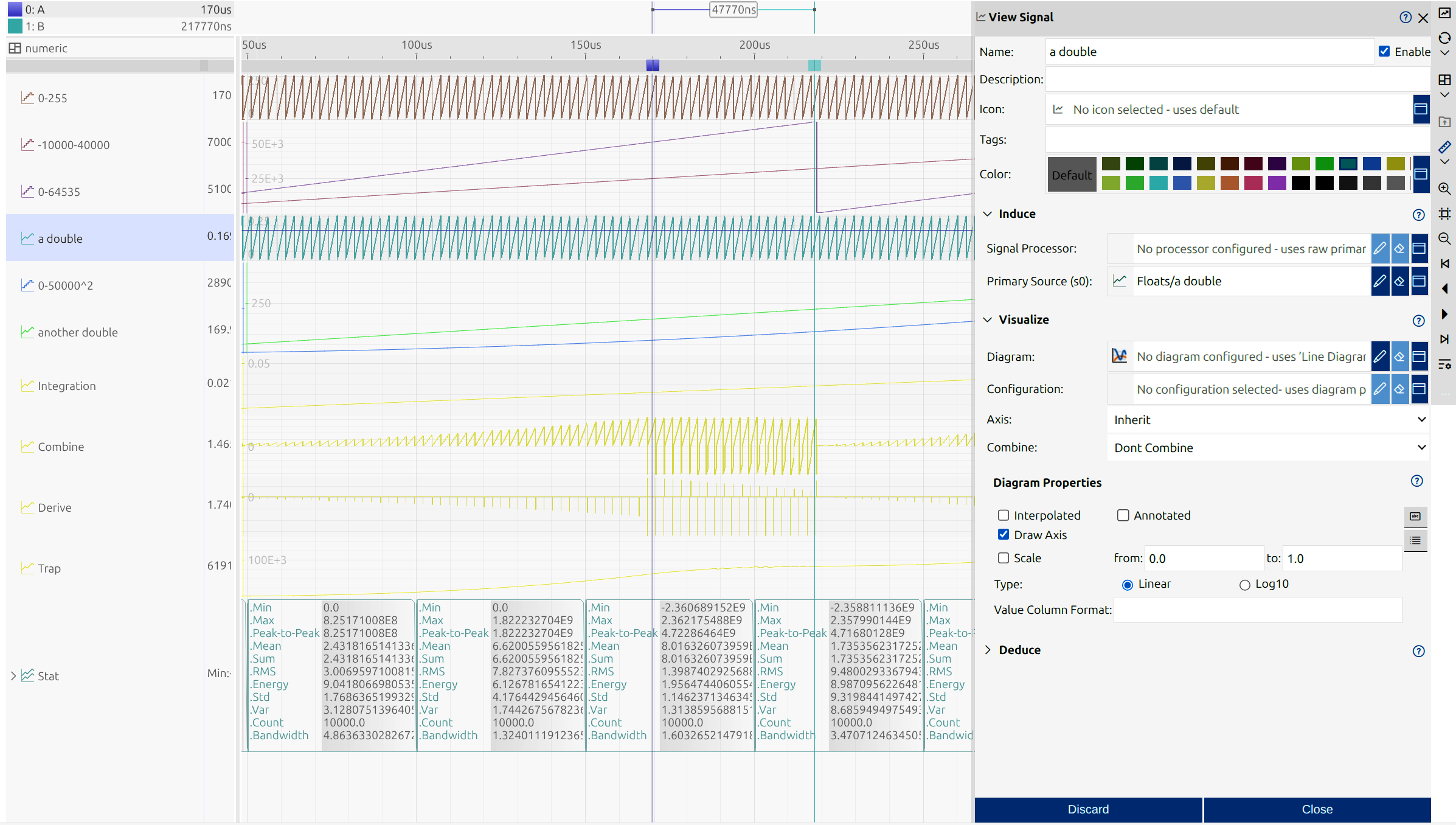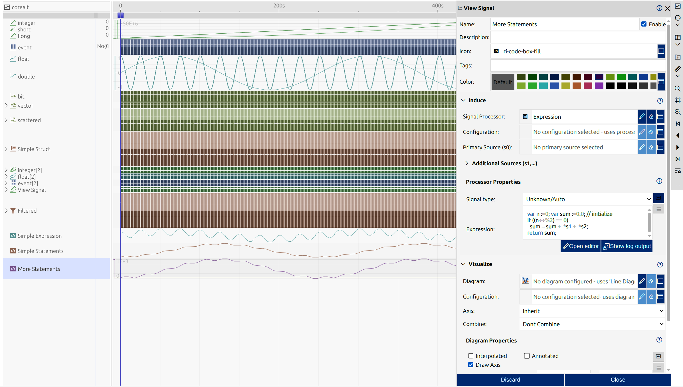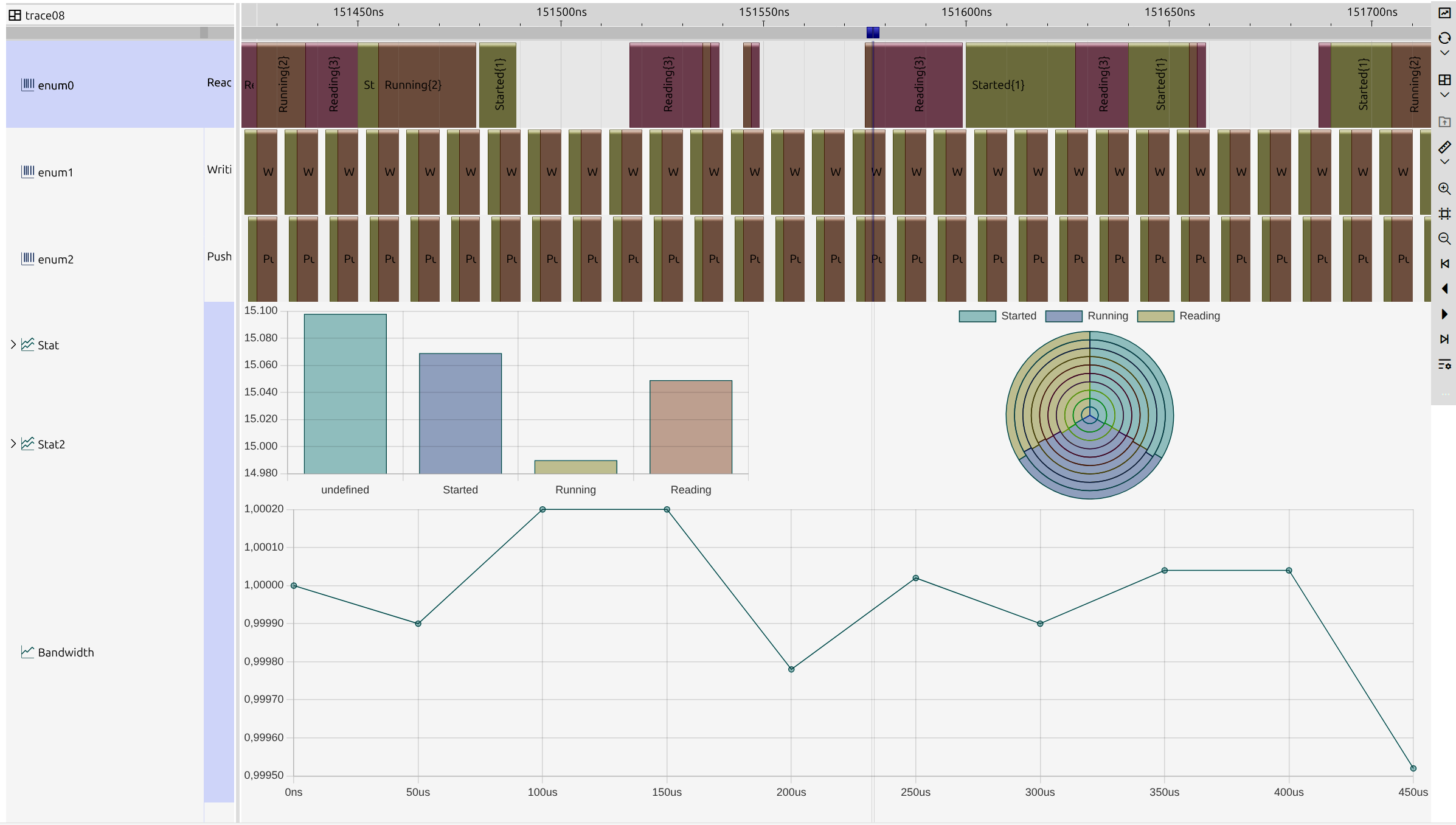 Every development process is unique, and every developer has a distinct workflow. With impulse, users can customize their views to match their specific needs, ensuring an efficient and intuitive experience. The user-friendly interface keeps the focus on signal data rather than the tool itself. Powerful visualization elements enable the creation of informative, tailored displays. Choose from various diagram types to represent signals across different domains, such as time and frequency, or use charts to present statistical insights. This flexibility allows for clear, precise data interpretation, enhancing analysis, debugging, and overall system understanding with a personalized approach.