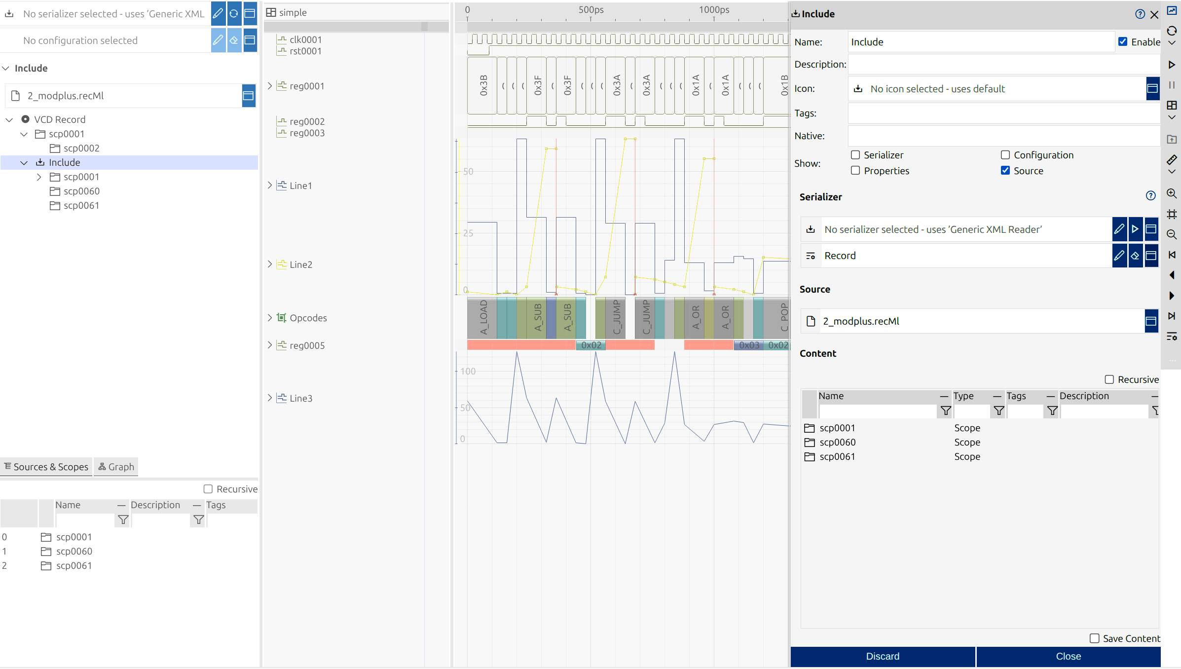 A graphical representation of the source signals and scopes makes it easy to navigate, find and understand.